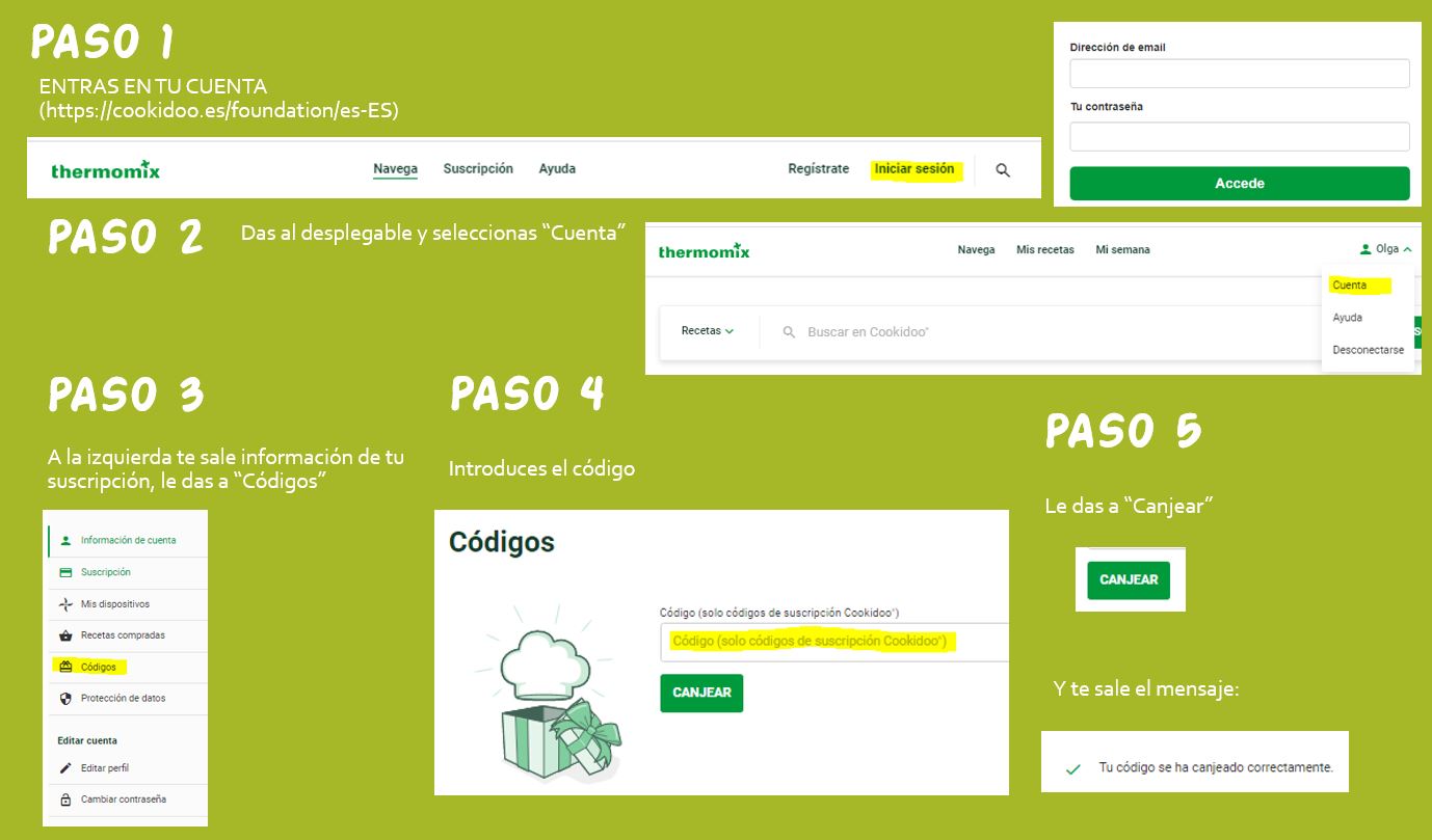 Ya tienes tu código y lo quieres canjear en Cookidoo ®, es muy sencillo.