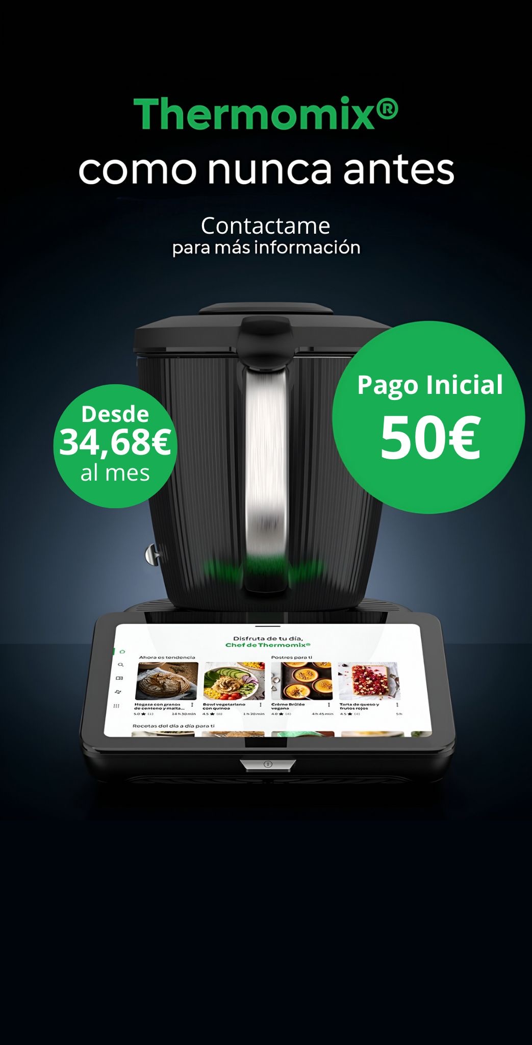 Ahora reservando solo con 50€ nuestro TM7, no pagarás nada más hasta septiembre! Además con cuotas muy cómodas que van desde los 34€ al mes, poco más de 1€ al día, pero un gran ahorro a final de mes porque….el placer de lo hecho en casa…es lo mejor!!!